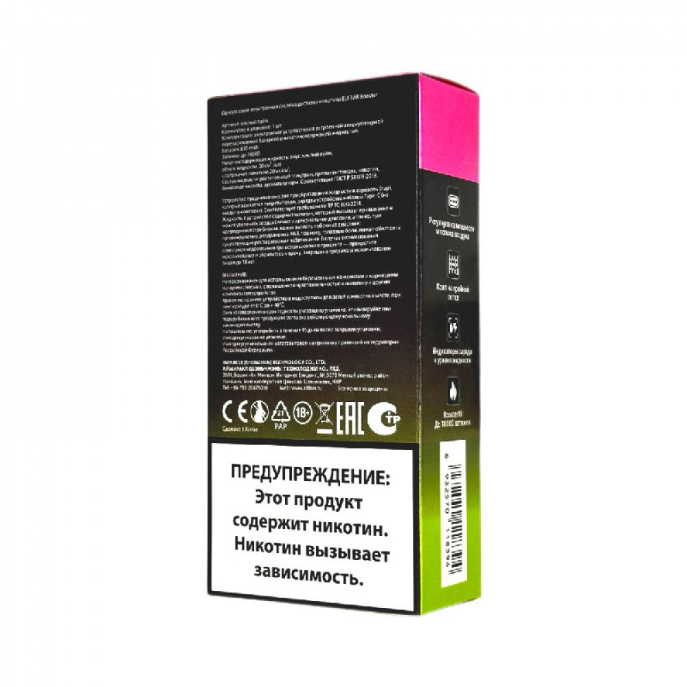 Технические характеристики Elf Bar 30000 Ананас питайя грейпфрут