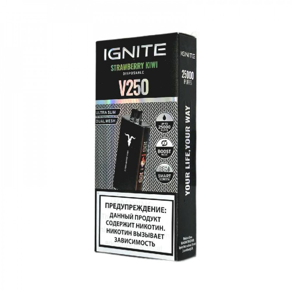Электронная сигарета Ignite V250 Black 25000 - Strawberry Kiwi (Клубника киви) - купить в Обояни
