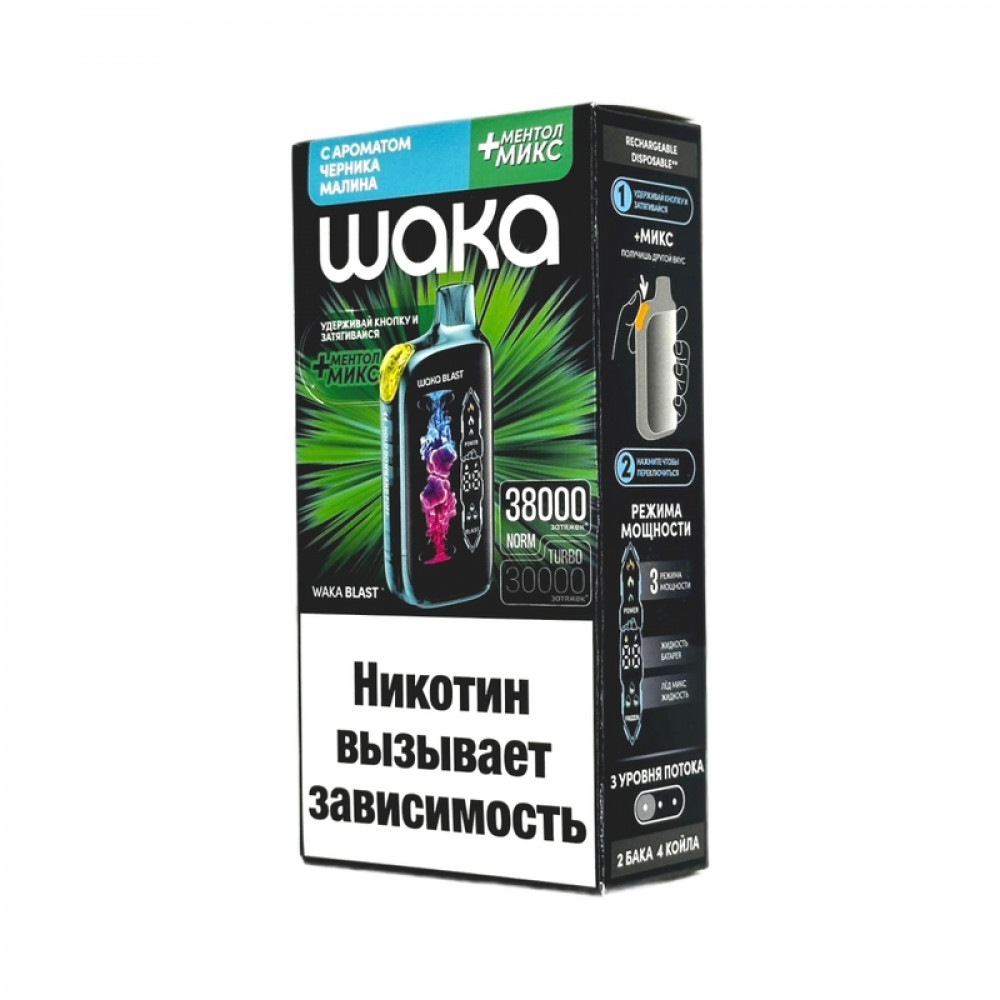 WAKA BLAST 38000 Hard - Черника малина + ментол микс - купить в Обояни